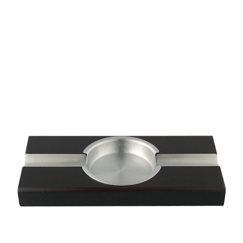 2-CIGAR ASHTRAY DARK WOOD FINISH W/ STAINLESS STEEL