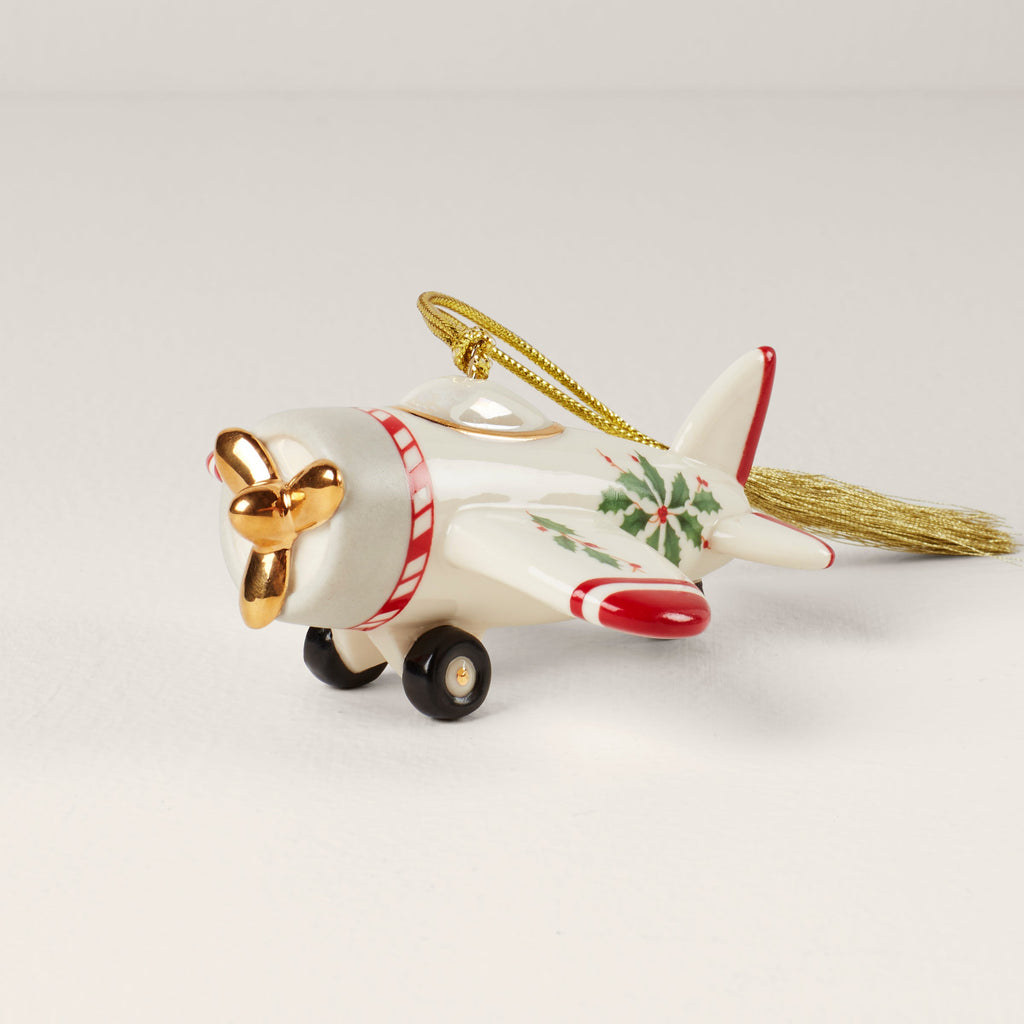 Hearts will soar with this addition to the tree! Featuring an aviation ornament decorated with a holiday design that combines candy cane stripes and beautiful bushels of holly.