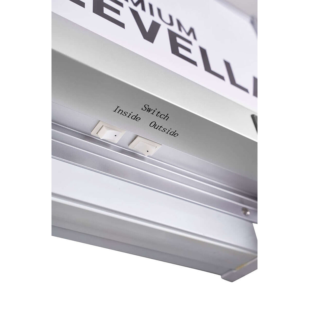 Premium Levella's line of commercial display fridges come in silver and black and have different storing capacities measured in cubic feet. You will also find single, double, and triple door options. Each fridge has a glass door, interior lighting, door lock, internal cooling fan, adjustable shelving, balanced temperature control, and a customizable lightbox for your businesses logo.