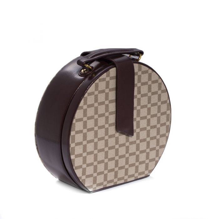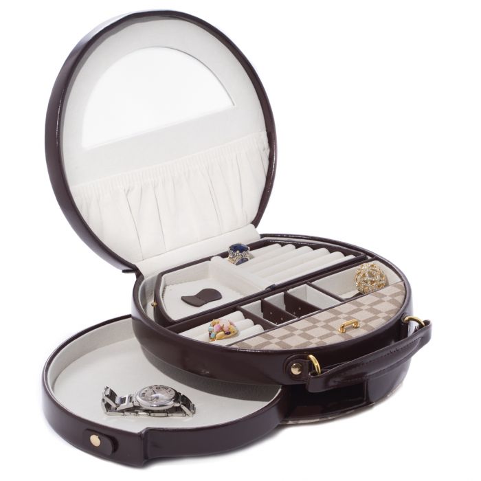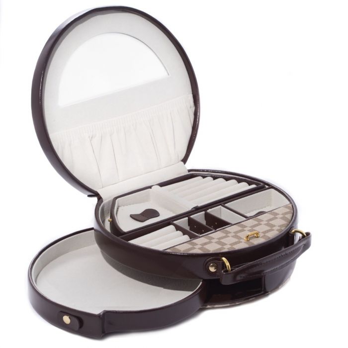 Bey-Berk Round Jewelry Box Case | Two-Tone Brown Leathe | BB568BRW