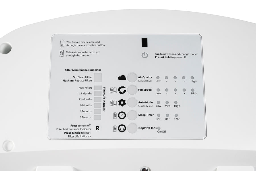 Intelligent purification at its finest; particle and odor sensors will detect the amount of pollutants in your environment and will adjust fan speed accordingly to ensure the freshest air quality at all times.