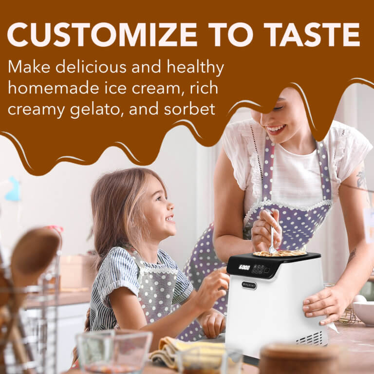 - Complete Convenience-Â Our ice cream maker offers the most completely convenient experience available for a countertop ice cream maker, with premium features not available in budget machines. The powerful built-in compressor freezer allows for continuous use without the inconvenience of having to pre-freeze the stainless steel mixing bowl. You will never again have to wait and take up freezer space before being able to make your favorite frozen dessert.