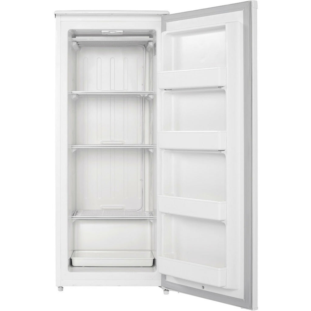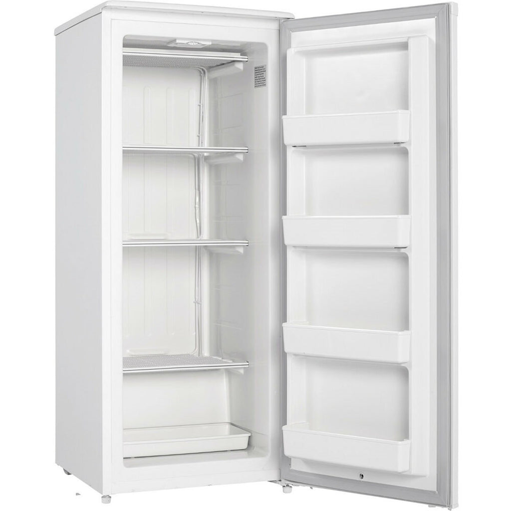 This modern upright freezer by Danby is ideal for any type of household. The upright freezer design allows it to easily integrate into any setting and the generous 8.5 cubic feet (241 litres) of storage space is ideal for smaller families and couples. There's plenty of cooling area due to the four handy door shelves and three additional quick-freeze shelving units. The convenient manual-defrosting function makes it easy to maintain and stay ice-free and it also features an internal drip tray. The ultra-modern mechanical thermostat is a breeze to program and monitor while the scratch-resistant worktop is ideal for storing extra accessories and best of all it is Energy Star® compliant. This ultimate freezer also features a reversible door hinge which allows you to adjust for either left or right-handed opening and offers a 5-year warranty on parts and labour with in-home service.