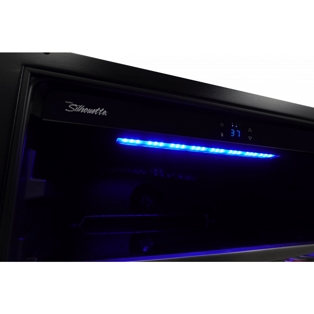 Whatever your chilled choice of decadent drink may be, this Danby Silhouette "Ricotta" beverage center is outfitted to accommodate. This cooler will undoubtedly make you the host with the most options of indulgence. The minimalist control panel has a clean, discrete look and is easy to use while blue LED track lighting that illuminates the interior of this unit exquisitely displays your wine without any damaging heat. All these features combined create the perfect beverage center for your needs.Â