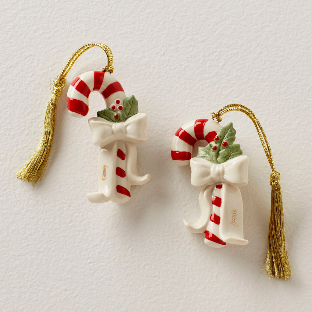 Celebrate the true joy of friendship Make yourself and a friend merry with the Forever Friends Candy Cane 2-Piece Ornament Set. Crafted in shimmering porcelain, each of these bright candy cane ornaments can be personalized with a name up to 12 characters.
