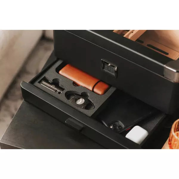 MILITARY FOAM ACCESSORY DRAWERÂ - Each Military Humidor drawer comes lined with EVA foam with a diamond-cut pattern that resembles the foam found in military storage cases. Inside we have included a removable pre-cut accessory holder that houses our exclusive Gunmetal Edition Accessory Kit by Klaro. Stop losing your accessories and store them in the ideal place, your humidor. Purchase the accessory kit for the ultimate gift experience. (Accessories Not Included)