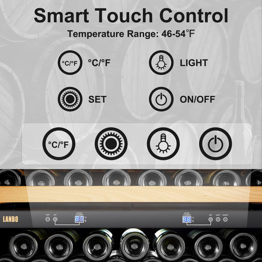 SIMPLE OPERATIONÂInstalled easy touch control panels that you just need to adjust the temperature display type you like and then set the suitable temperature for your collections. Left behind the cooler and enjoy your wines! |