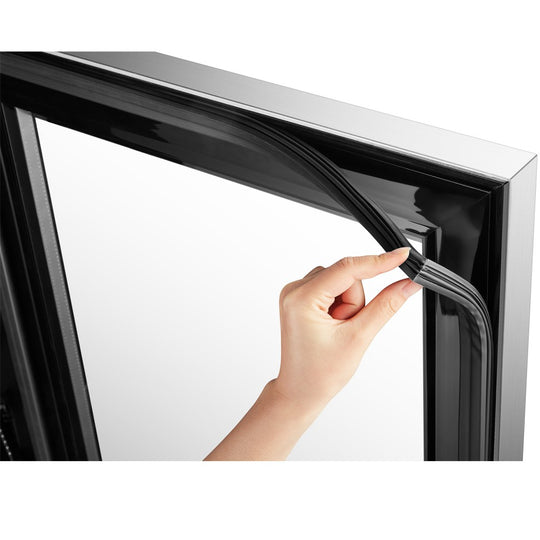 Tinted double panel tempered glass door trimmed with stainless steel |