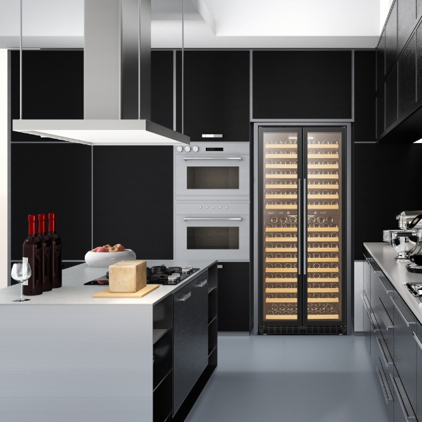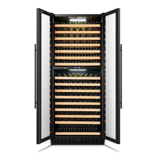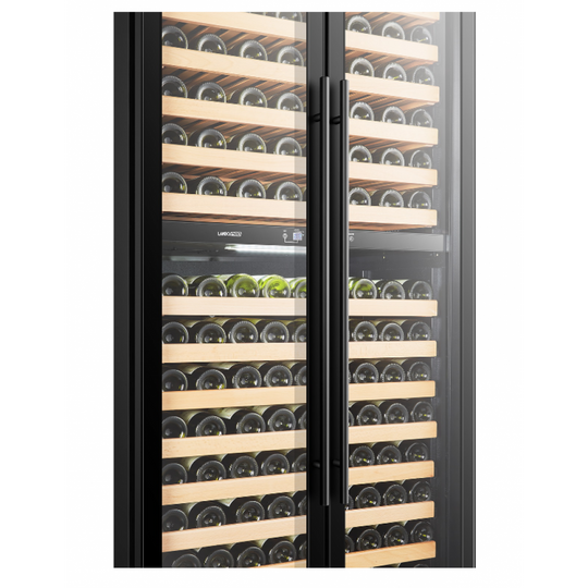 The LP328D is a Dual Zone Wine Storage Cooler that holds up to 287 bottles. With a front breathing design, this unit can be used for built-in or freestanding use. The units black finishes and French doors speak volumes to the stunning elegance this wine and beverage cooler will bring to your home.