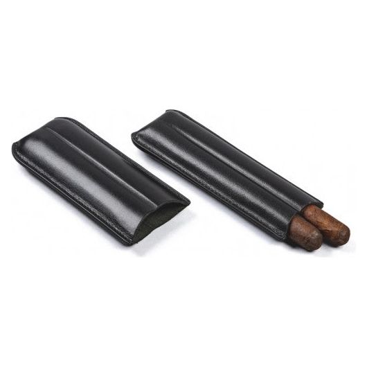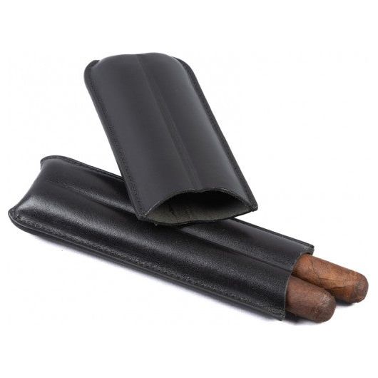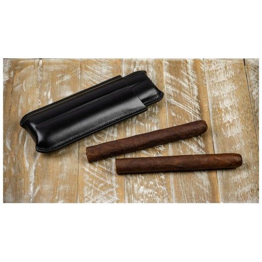 2 Cigar Black Leather Case