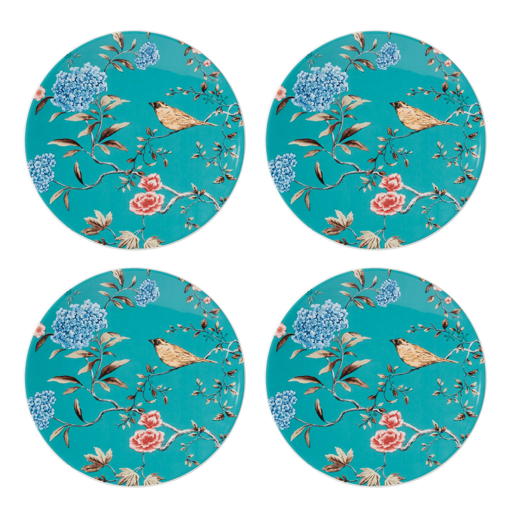 Open your home to a lush English garden with the Sprig & Vine collection. Inspired by the beauty of vintage textiles, this set of four accent plates combines birds and bright botanicals for a backyard aesthetic that will bring new life to your table. A sliver of metallic adds a gleaming touch to give this floral set its golden finish.