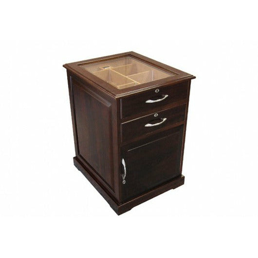 Santiago End Table Cigar Humidor with Glass Top & Drawers | Holds 700 Cigars