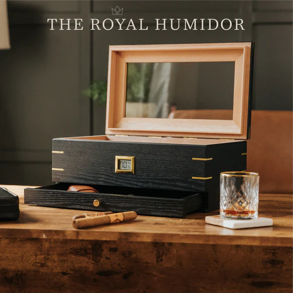 - The Royal comes included with 5mm thick Spanish cedar, high-performance gasket seals, and a hygrometer that measures humidity with digital precision.