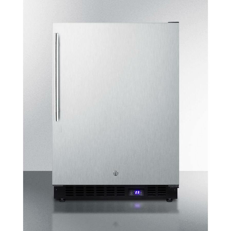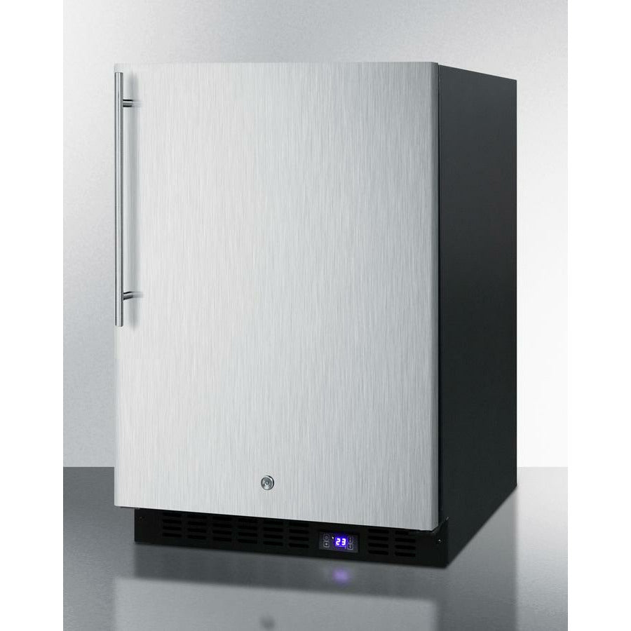 The SPFF51OSSSHVIM is a 24" wide all-freezer designed for built-in or freestanding use, with a fully finished jet black cabinet and 304 grade stainless steel wrapped door. The door includes a factory installed lock and a thin stainless steel handle to complete the professional look.