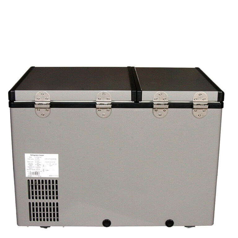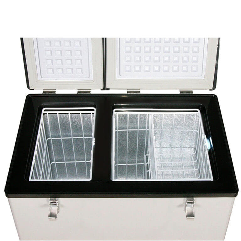 This Whynter Dual Zone Portable Fridge / Freezer offers premium quality and innovative design to your frozen/ refrigerated needs. With two separately controlled temperature zones, you can set either zone as a freezer and the other as a refrigerator or at any temperature for your specific requirements. All you need is either a standard household 110 Volt outlet or a 12 Volt power source, like an automotive battery. The internal LED lights also allow for easier, more convenient access in low-light conditions.
