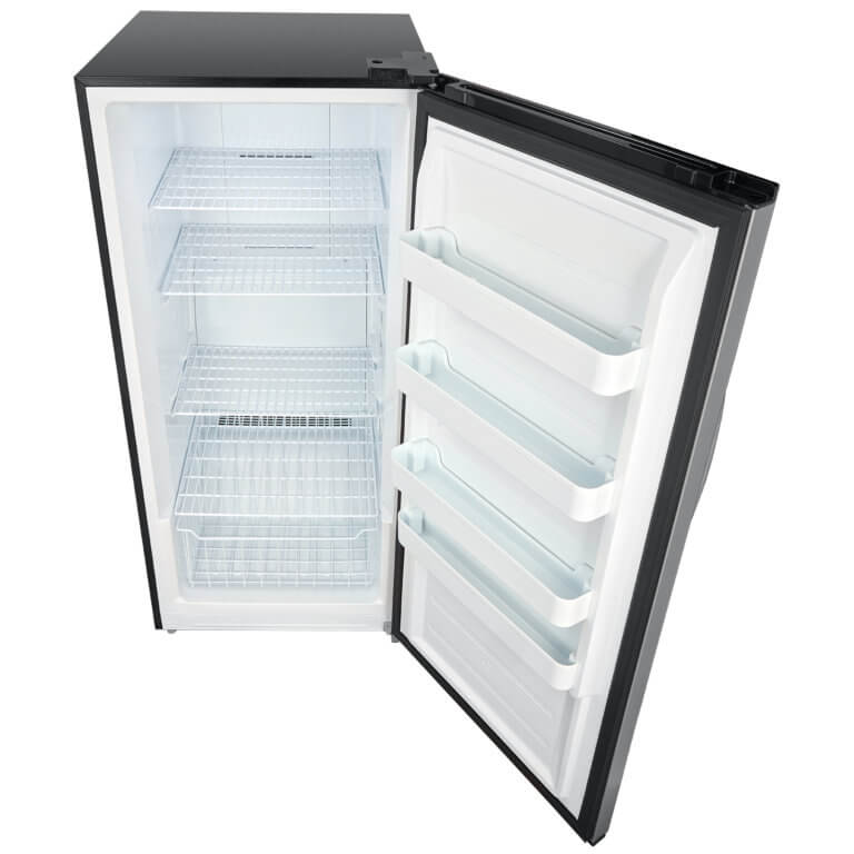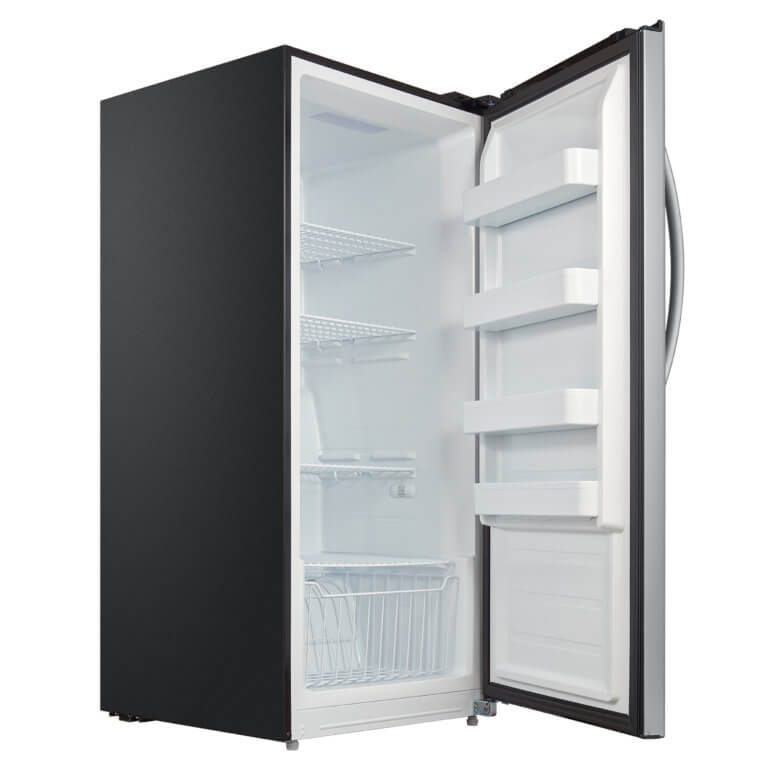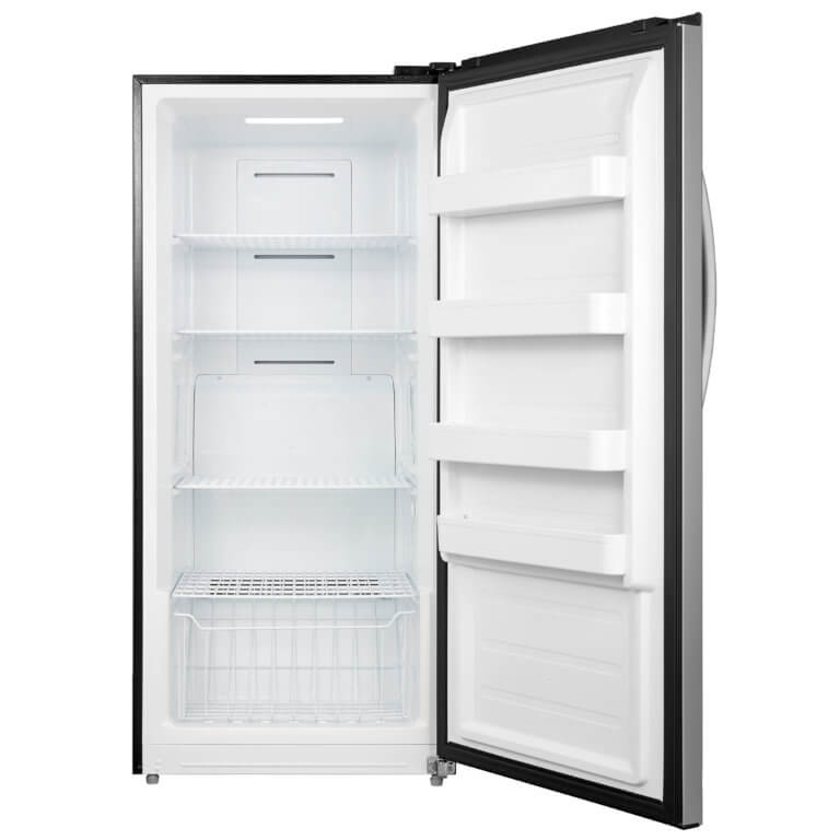 - Frost-free-Â Our 13.8 cu ft upright freezer has a frost-free feature that saves you maintenance by preventing icy buildup and never having to empty the contents to manually defrost.