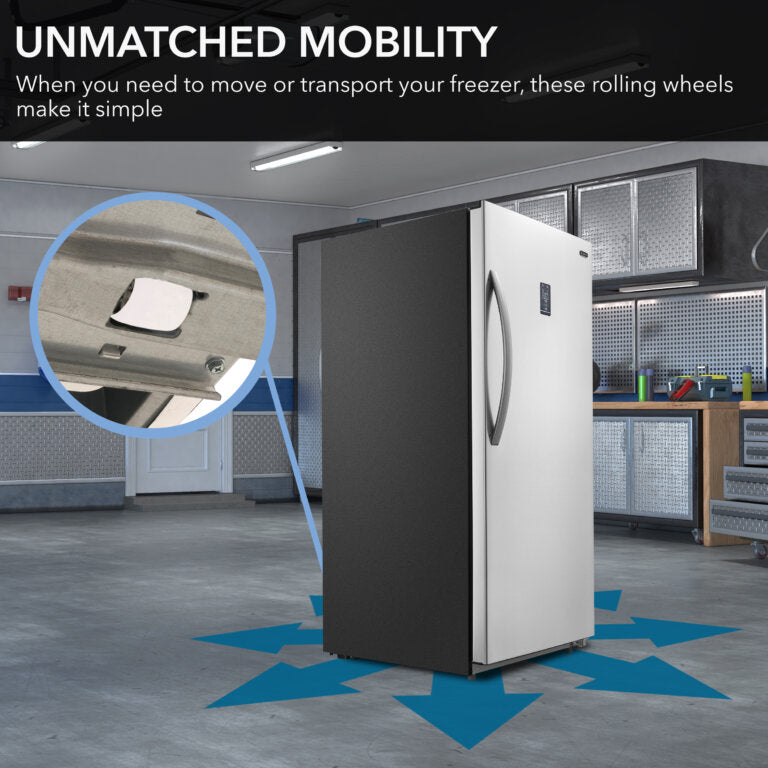 Perfect for your freezing and storage requirements, the Whynter 13.8 cu.ft. Energy Star Digital Upright Convertible Deep Freezer / Refrigerator gets you the additional storage space you need with the features you desire. Its efficient design and smart insulation makes this 13.8 cu ft upright freezer an ENERGY STAR® rated appliance to help you save on energy bills. A powerful fan-circulated cooling system allows precise airflow for efficient temperature distribution and the convenient frost-free design minimizes the need to manually defrost this upright freezer.